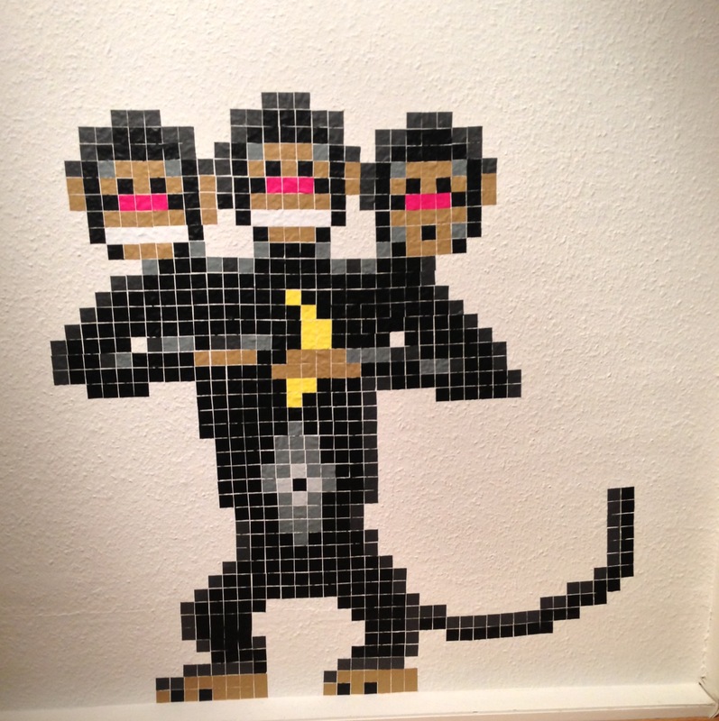 We bought some stickaz for our new office. Stickaz are pixel stickers which stick on any surface.Today I assembled the three headed monkey of Monkey Island. Here's a time lapse of the assembly: