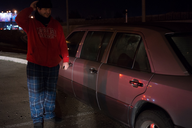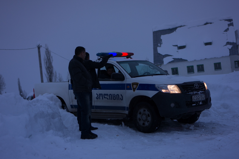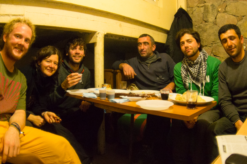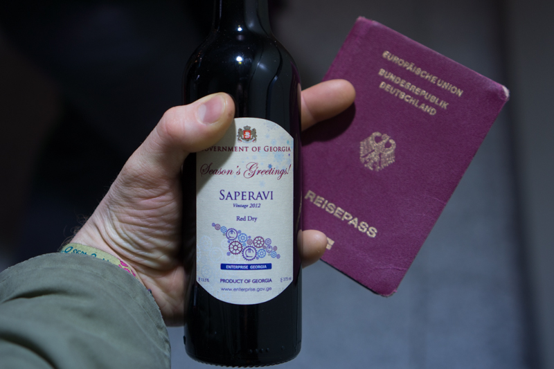 We found Eka in a small compartement with two security guards, who couldn't go home because of the blocked road. So they did what you do in Georgia if you have no other choice, drinking wine :)