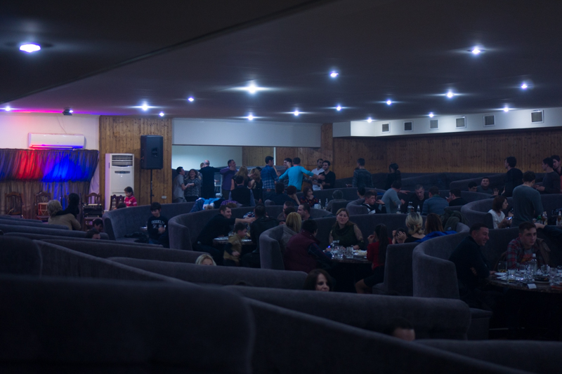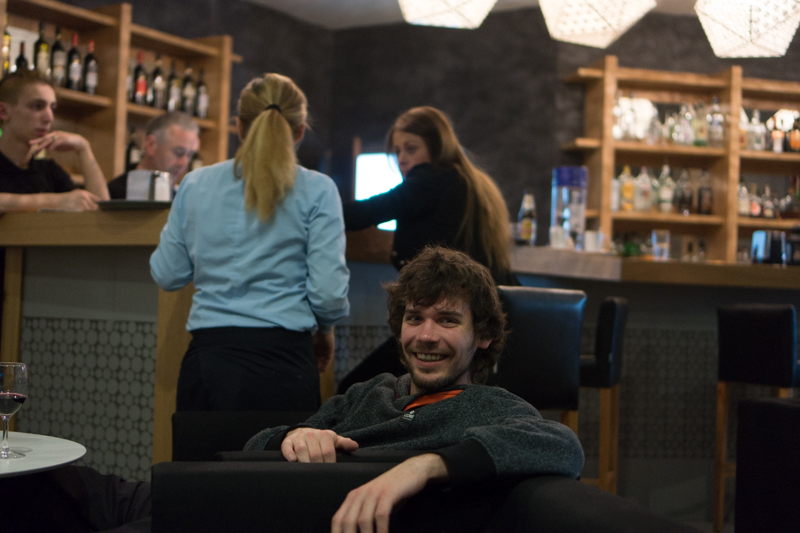 This was by far not the end of the evening as we continued to go to an invitation by Robert. We met Robert on the slopes earlier, he and his group were on the way to a place close to Gudari and got stuck on the way, so they also stayed in Gudauri. The invitation was in the Chimney Bar of the 4 star hotel "Marco Polo". We had some nice drinks, wine and a good round of movie charades.