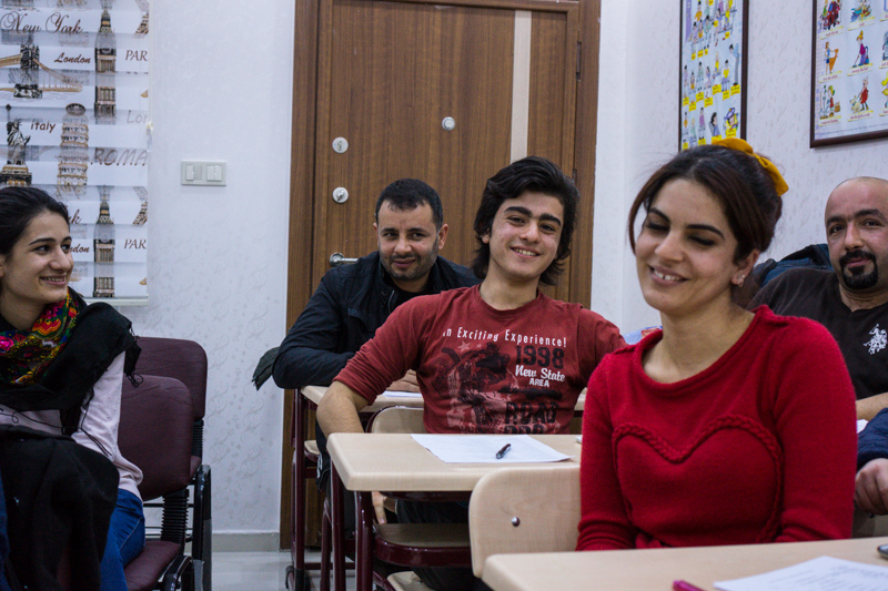 After I arrived in Şanlıurfa and met Halil, my host in Urfa, we went to his language school, where he was learning english. I met his friend and teacher, Sinan, and I attended a english class. I was seated next to Sinan, and was asked some questions about me, my travels, german culture and Europe. In return I asked some questions to the students.